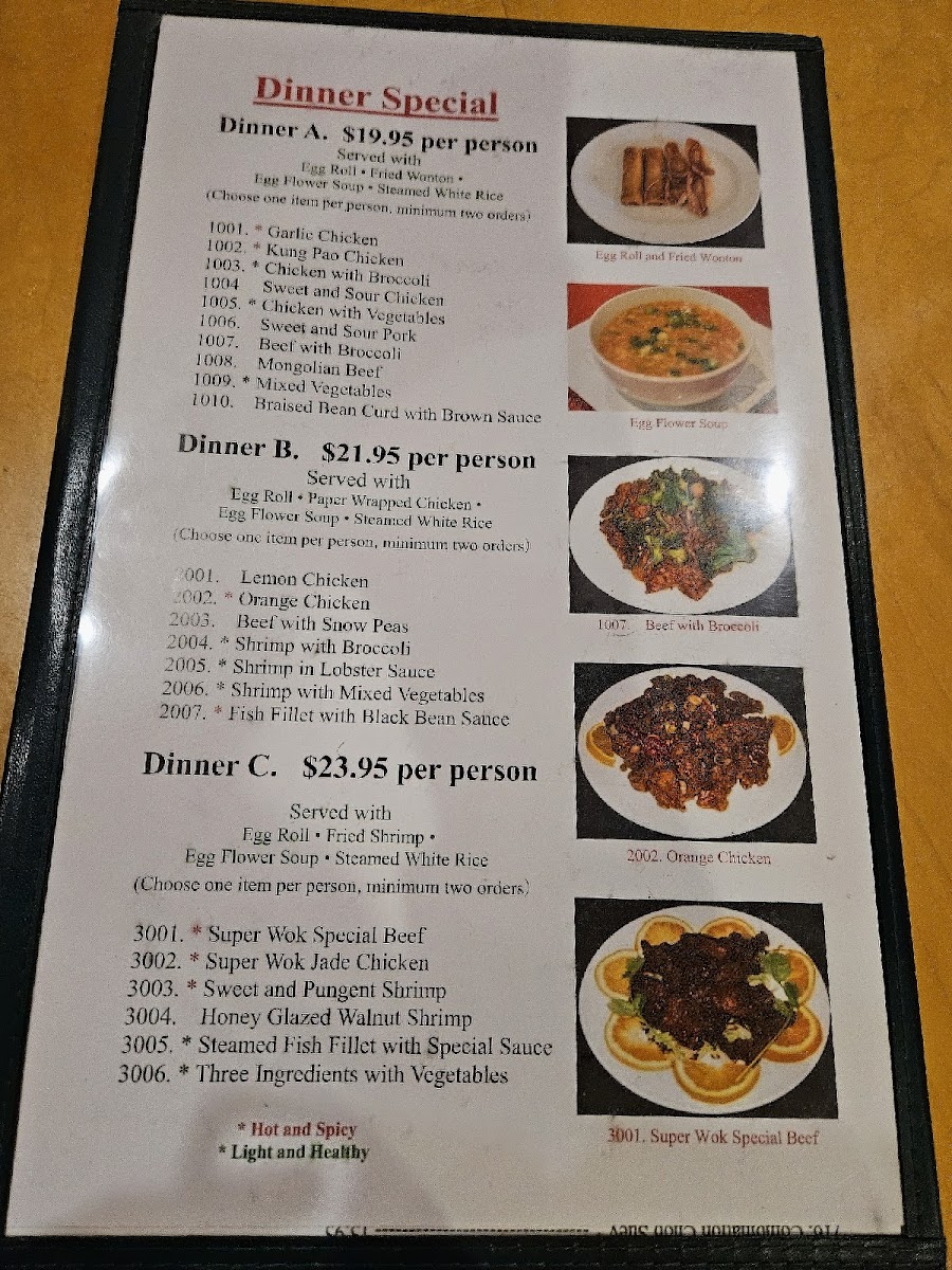 Super Wok Chinese Restaurant offers a menu that feels familiar and approachable, perfect for casual dining any time of day. Whether you’re stopping by for a quick lunch or settling in for a relaxed dinner, their selection covers the comforting range of classic Chinese dishes and a few thoughtful variations.